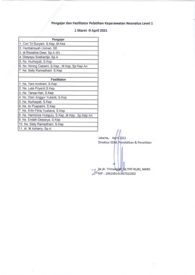 PENERIMA SERTIFIKAT PELATIHAN KEPERAWATAN NEONATUS LEVEL 1